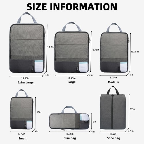 BAGAIL 6 Set/4 Set Lightweight Compression Packing Cubes for Travel, Anti-Tearing Expandable Organizer Bags for Suitcase