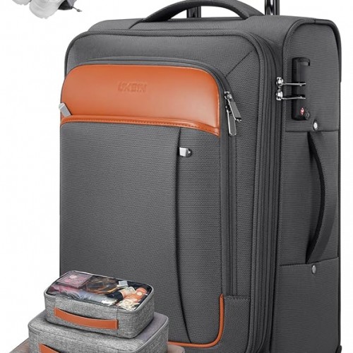 U.S. Traveler Rio Lightweight Softside Rolling Carry-on Suitcase, 4-Wheel Single, Purple