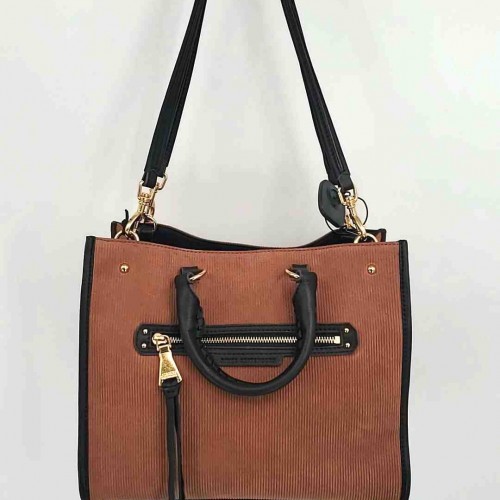ANN TAYLOR/LOFT Brown Gold Synthetic Woven Shoulder Bag Purse