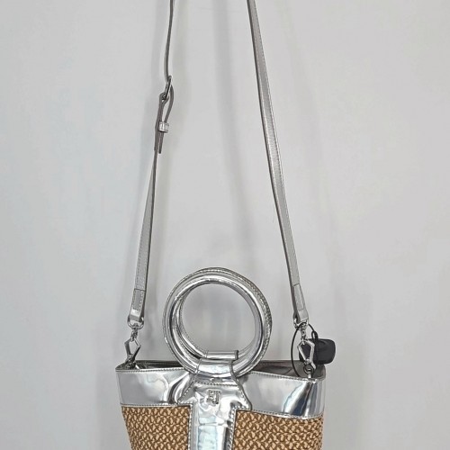 DANIELLA LEHAVI Black & White Leather Print Chain Detail Purse