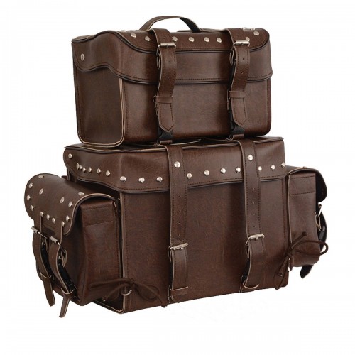 Milwaukee Leather MP8127RT Large Retro Brown 4-Piece Studded PVC Motorcycle Touring Pack One Size