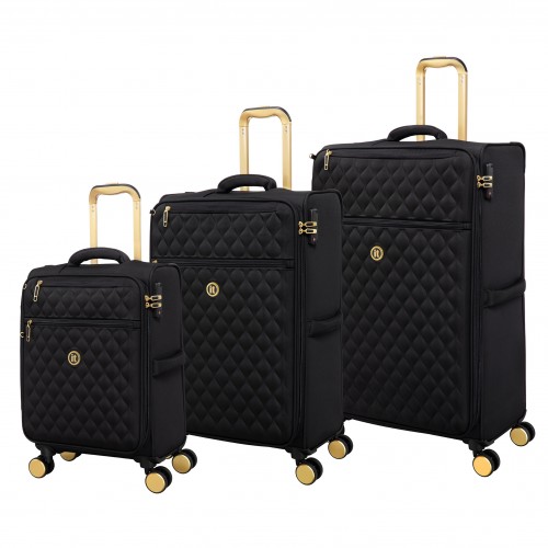 Glimmering 3 Piece Softside 8 Wheel Spinner Luggage Set (Black)