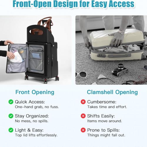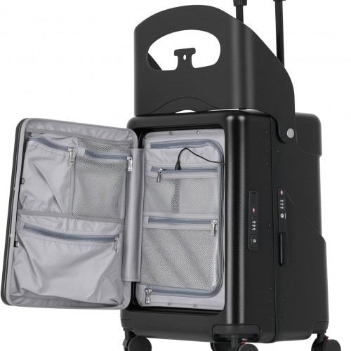22″ Ride On Luggage with Seat for Kids & Adults, Lightweight Hardside Ride-On Suitcase with Front Opening, TSA Lock, 360° Spinner Wheels, Black