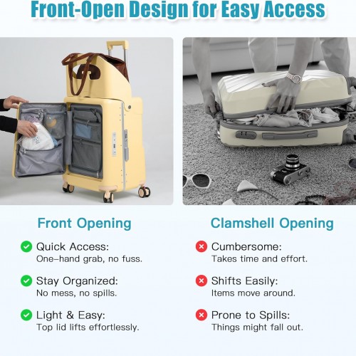 22″ Ride-On Luggage with Seat for Kids & Adults, Lightweight Hardside Ride-On Suitcase with Front Opening, TSA Lock, 360° Spinner Wheels, Yellow