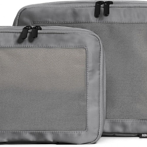 Compression Packing Cubes for Travel – Luggage Organizer Bags – Double Zipper Packing Cubes for Suitcases (2-Pack, Light Grey)