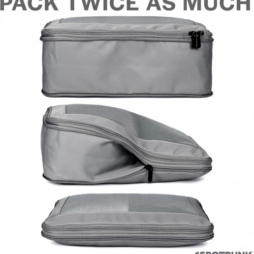 Compression Packing Cubes for Travel – Luggage Organizer Bags – Double Zipper Packing Cubes for Suitcases (2-Pack, Light Grey)