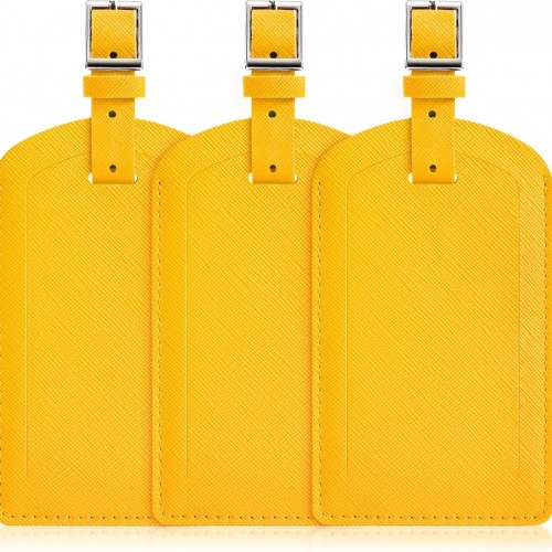 3 Pack Luggage Tags for Suitcases, TSA Approved Bag Tags, Baggage Tags with Privacy Protection, Travel Essentials Luggage Accessories, Energetic Yellow