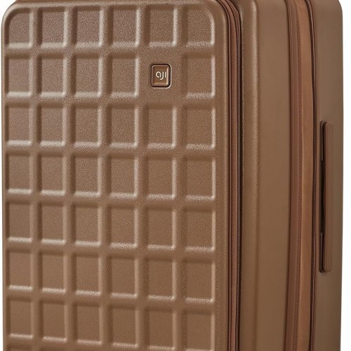 aji Expandable Top Opening 26 Inch Checked Luggage with Spinner Wheels, Large Suitcase with TSA Lock, Hard Shell Travel luggage Suitcases for Men Women, for 20+Days Travel, Chocolate Brown