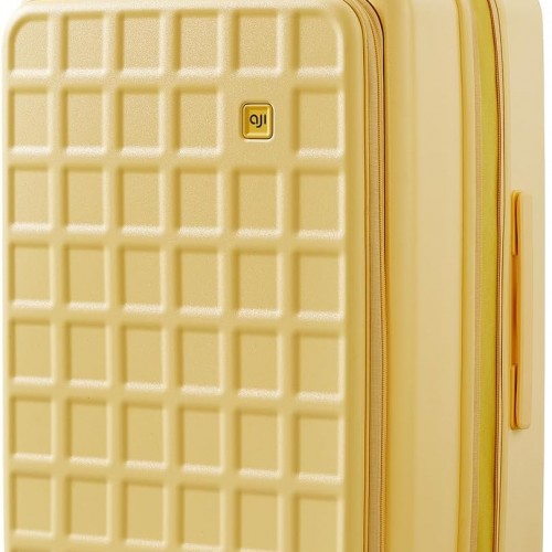 aji Expandable Top Opening 26 Inch Checked Luggage with Spinner Wheels, Large Suitcase with TSA Lock, Hard Shell Travel luggage Suitcases for Men Women, for 20+Days Travel, Cheese Yellow