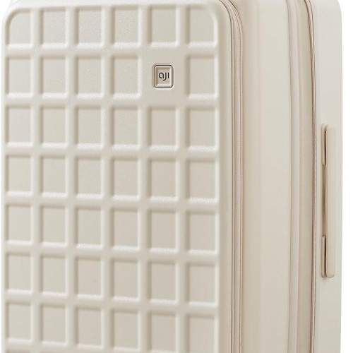 aji Expandable Top Opening 24 Inch Checked Luggage with Spinner Wheels, Large Suitcase with TSA Lock, Hard Shell Travel luggage Suitcases for Men Women, for 12+Days Travel, Coconut White