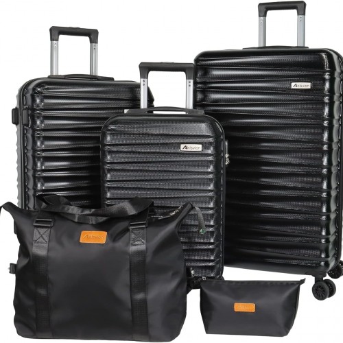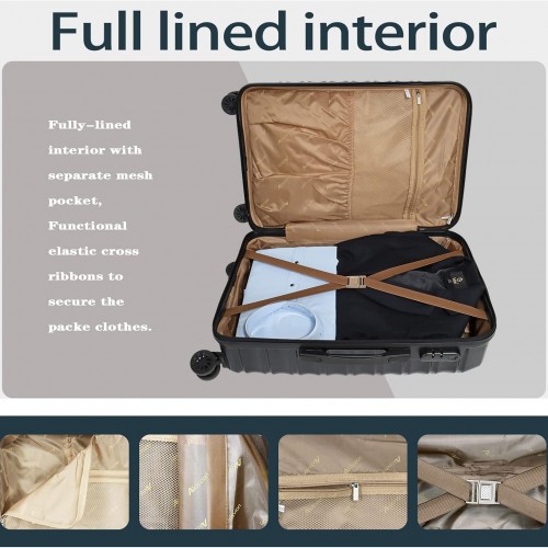 Luggage Sets 3 Piece(20/24/28)-Suitcase Set- Luggage with Wheels-PC + ABS Durable Lightweight Rotating hardshell suitcase 5PCS (Black)…