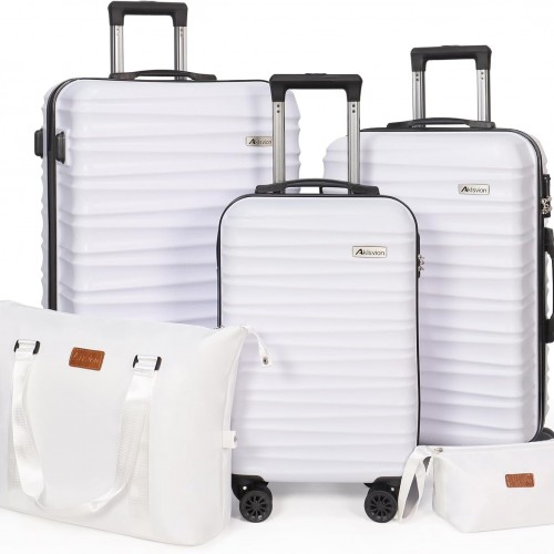 Luggage Set 3 Pieces (20/24/28) -Suitcase Set – Carry on Luggage with Wheels – Check-in Luggage – PC + ABS Durable Suitcase Rotating Silent Wheels Hardside Luggage with Spinner Wheels,5pcs (White)