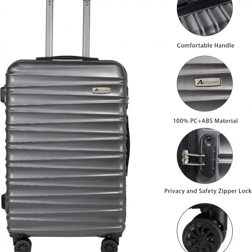 Luggage Sets 3 Piece(20/24/28)-Suitcase Set- Luggage with Wheels-PC + ABS Durable Lightweight Rotating hardshell suitcase 5PCS (Metallic Grey)…