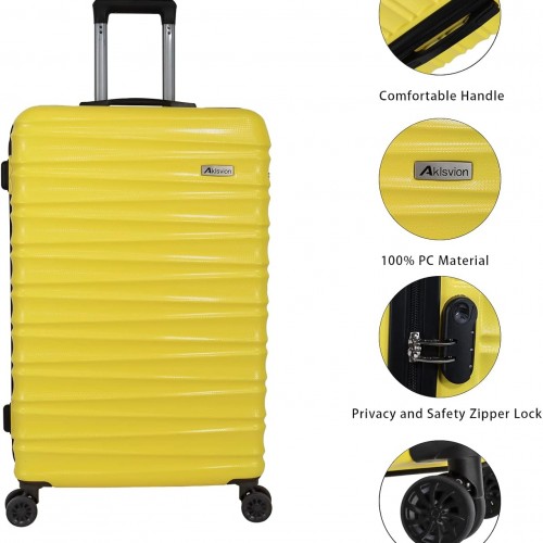 Luggage Sets 3 Piece (20/24/28 inch)-Carry On Suitcase-Suitcase With Wheels-PC+ABS – Hardside Spinner Travel Luggage (Yellow, 3 Pcs Set)