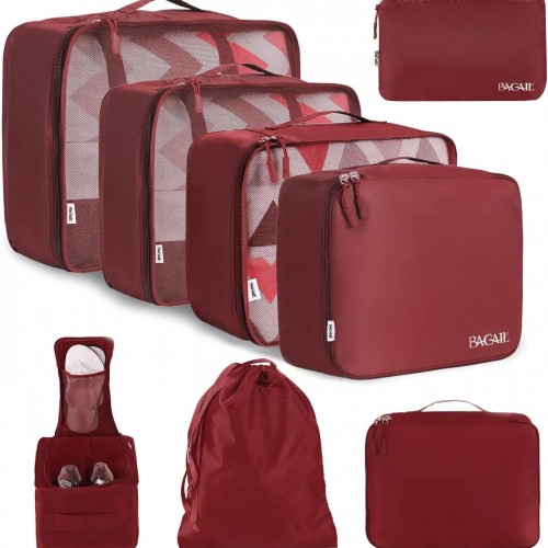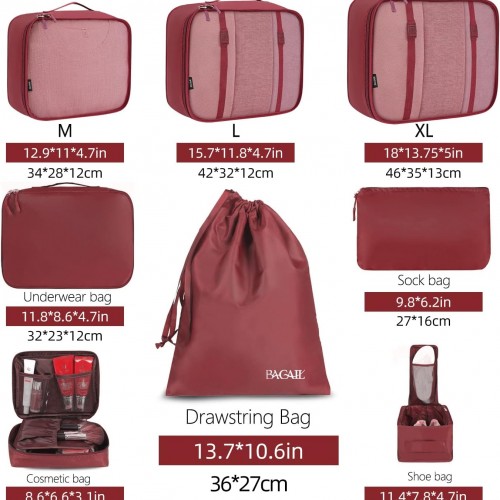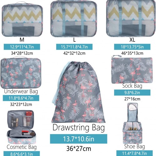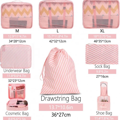 BAGAIL 8 Set Packing Cubes Luggage Packing Organizers for Travel Accessories-White and Pink Stripe