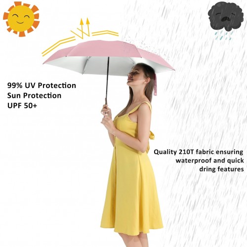BAODINI Travel Mini Umbrella for Purse With Case Small Compact UV Sun Protection Sun Lightweight Tiny Pocket Umbrella for Women Girls and Men