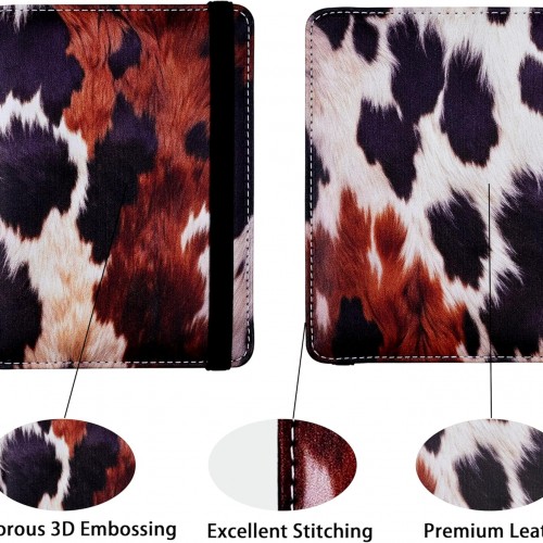 Passport Holder for Women and Men PU Leather Passport Cover for Travel (Cow Print)