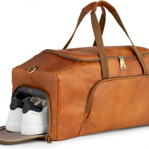 Berliner Bags Vintage Genuine Leather Duffle Denver XL for Travel or the Gym, Weekender Bag with shoe compartment, Overnight Bag for Men and Women – Brown