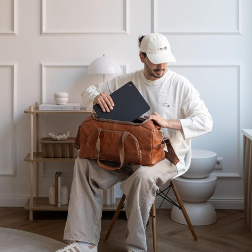 Berliner Bags Vintage Genuine Leather Duffle Austin XL for Travel or the Gym, Weekender Bag with Shoe Compartment, Overnight Bag for Men and Women – Brown