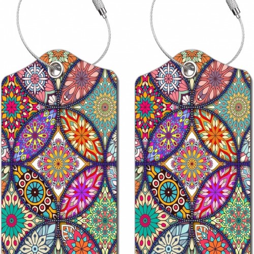 2 Pack Luggage Tag for Suitcase, Cute Unique Leather Bag Tags Identifiers Privacy Cover ID Label with Durable Steel Loop for Women Men Kids Girls Travel, Bohemia