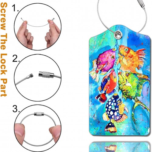 2 Pack Luggage Tag for Suitcase, Cute Unique Leather Bag Tags Identifiers Privacy Cover ID Label with Durable Steel Loop for Women Men Kids Girls Travel,Fish