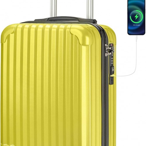 Personal Item Suitcase 18x14x8 Inches Hardside Built In TSA Lock & USB Port Lightweight Luggage With Removable Silent Wheels Underseat Carry-On Bag For Spirit and Frontier and More (Yellow)