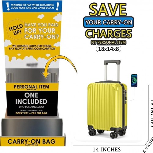 Personal Item Suitcase 18x14x8 Inches Hardside Built In TSA Lock & USB Port Lightweight Luggage With Removable Silent Wheels Underseat Carry-On Bag For Spirit and Frontier and More (Yellow)
