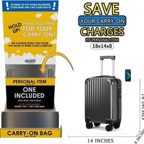 Personal Item Small Suitcase 18x14x8 Inches Hardside Built In TSA Lock & USB Port Lightweight Luggage With Removable Silent Wheels Underseat Carry-On Bag For Spirit and Frontier (Black)