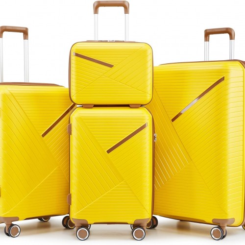 Campfun Luggage Sets 4 Piece, Expandable Carry On Luggage Set Hardshell PP, Suitcase Set with Double Spinner Wheels, Checked Durable Lightweight with TSA Lock, 14/20/24/28in, Yellow Brown(B)