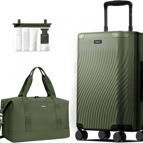 ECOHUB Hardside Expandable Carry On Luggage, 20″ Rolling Luggage 22x14x9 Airline Approved with Spinner Wheels & TSA Lock, Lightweight Small Hardshell Travel Suitcase Valises, 20inch Carry-on Green