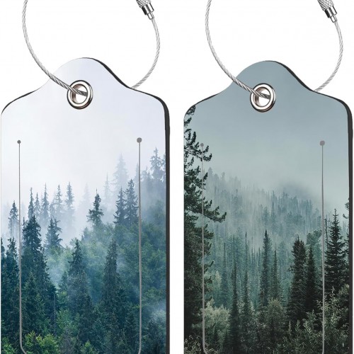 2 Pack Misty Forest Luggage Tag for Suitcases Misty Valley and Dark Forest PU Leather Bag Travel Suitcase ID Identifier Baggage Tags for Women Men Travel