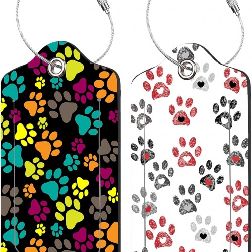 2 Pack Paw Pattern Luggage Tags for Suitcases,Paw Print Leather Baggage Suitcases Tag Name ID Label Privacy Cover Travel Bag Tags for Women Men Boys Girls