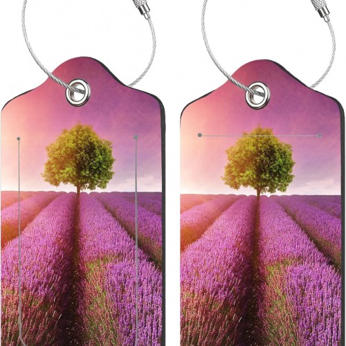 2 Pack Luggage Tags for Suitcases,Stunning Lavender Field Luggage Tag,PU Leather Id Label Luggage Tags with Stainless Steel Loop and Privacy Cover for Women Men Teens Travel