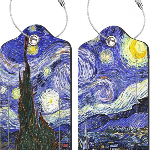 2 Pack The Starry Night Luggage Tags for Suitcases,Starry Night Van Gogh Leather Baggage Suitcases Tag Name ID Label Privacy Cover Travel Bag Tags for Women Men Boys Girls