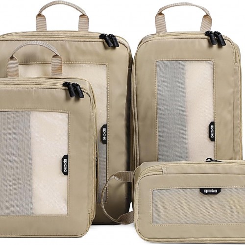 EPICKA TripCozy Compression Packing Cubes – 4 Set Durable Travel Organizer Bags with Mesh Top, Expandable Travel Accessories for Carry on, Luggage, Suitcase, Backpack (Beige)
