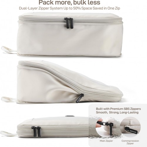 EPICKA TripCozy Compression Packing Cubes – 4 Set Durable Travel Organizer Bags with Mesh Top, Expandable Travel Accessories for Carry on, Luggage, Suitcase, Backpack (Beige)