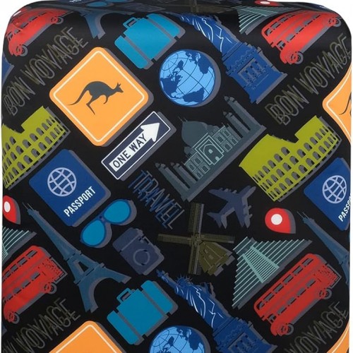 Explore Land Travel Luggage Cover Suitcase Protector Fits 18-22 Inch Case (Bon Voyage, S)