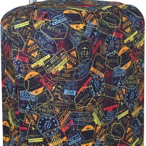 Explore Land Travel Luggage Cover Suitcase Protector Fits 18-22 Inch Case (Retro Pictorial, S)