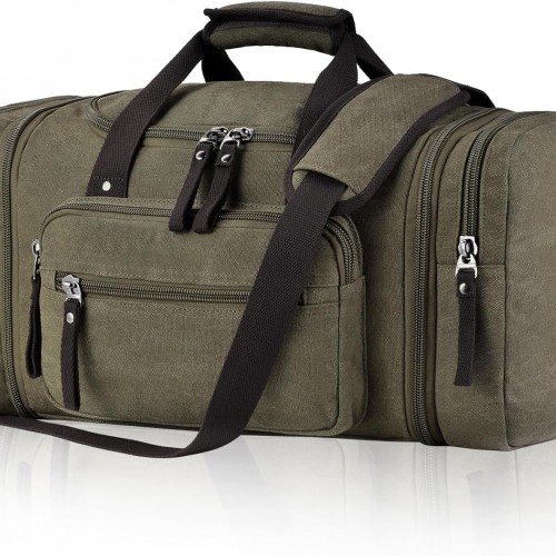 Felipe Varela Green 40L Canvas Duffel Bag for Men, Expandable Travel Gym Overnight Carry On Bag