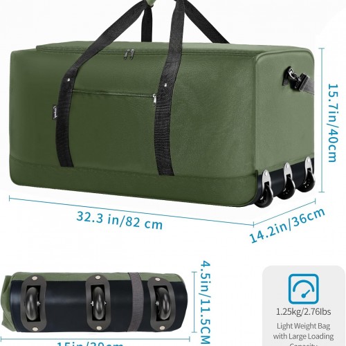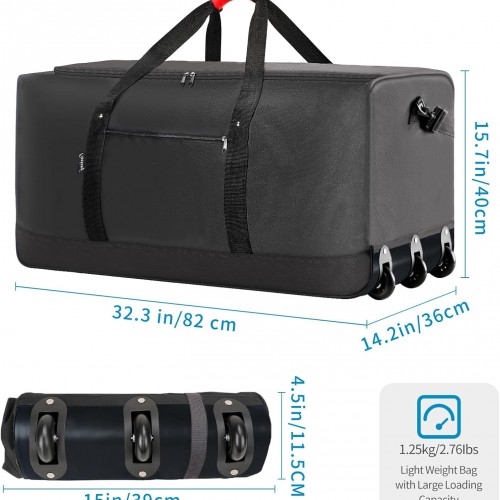 Finnhomy 120L Foldable Rolling Duffel Bag with 3 Wheels, Light Weight Travel Duffel bag with Large Loading Capacity, 32 inch Rolling Duffel bag with Shoulder Strap for Travel Camping Sports