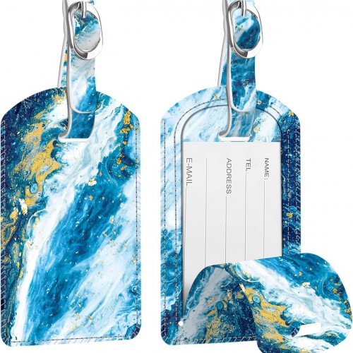 FINTIE 2 Pack Luggage Tags, Leather Name ID Labels with Privacy Cover for Travel Bag Suitcase, Theme – Shades of Blue