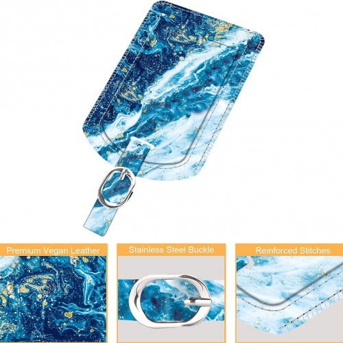 FINTIE 2 Pack Luggage Tags, Leather Name ID Labels with Privacy Cover for Travel Bag Suitcase, Theme – Shades of Blue
