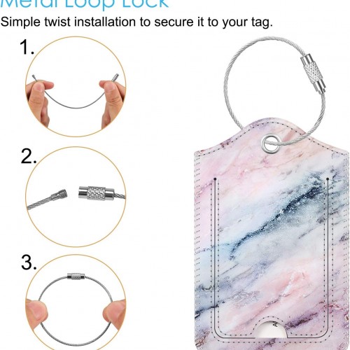 Fintie Luggage Tags, Privacy Cover ID Label with Stainless Steel Loop and Address Card for Travel Bag Suitcase – Marble Pink (2 Piece)