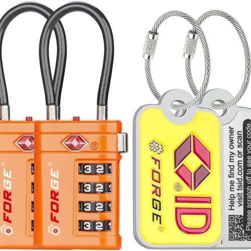 Forge TSA Approved Cable Luggage Locks, Re-settable Combination with Alloy Body(White 2 Locks)