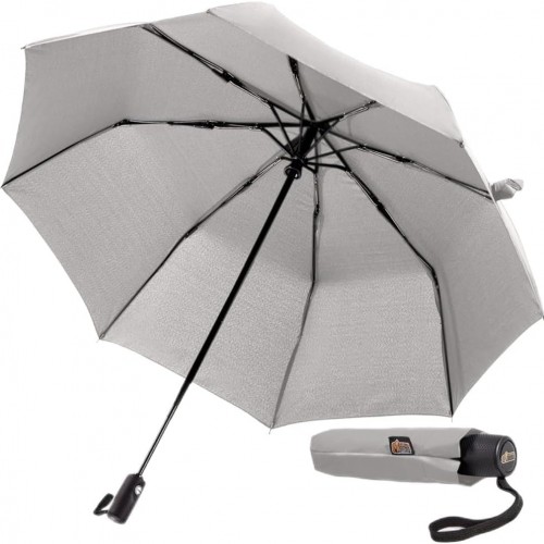 GORILLA GRIP Strong Stick Umbrella for Rain, Compact Travel One-Click Automatic Open Close, Lightweight, Portable, US Designed Reinforced Fiberglass Ribs, Wind Resistant, Easy Collapse, Gray