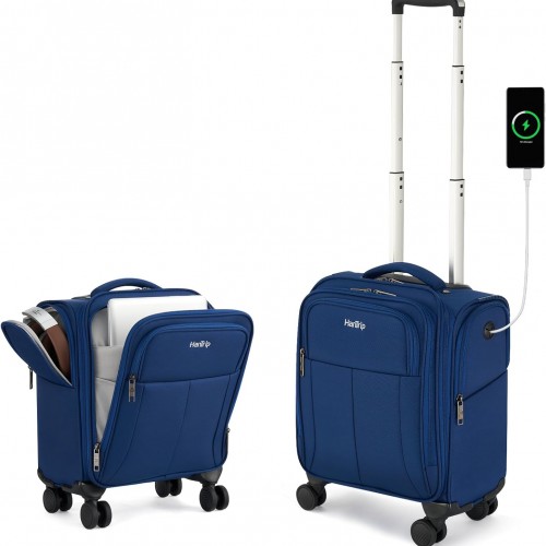 16 Inch Underseat Carry On Luggage with Wheels Softside Small Suitcases Personal Item Bag with Pocket Travel Luggage for Men Women Business Overnight Bag(Blue)