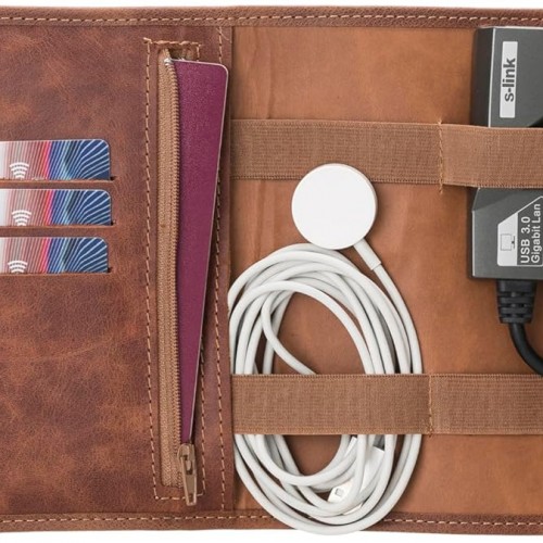 HARDISTON Custom Leather Electronic Organizer Roll – Personalized Cord Pouch for Travel Tech Accessories, USB Cables, Charger, Passport, SD Cards – Handmade Gift for All