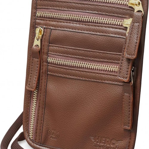 HERO Neck Wallet, RFID Blocking Passport Holder, Vegan Leather Travel Pouch (Brown)