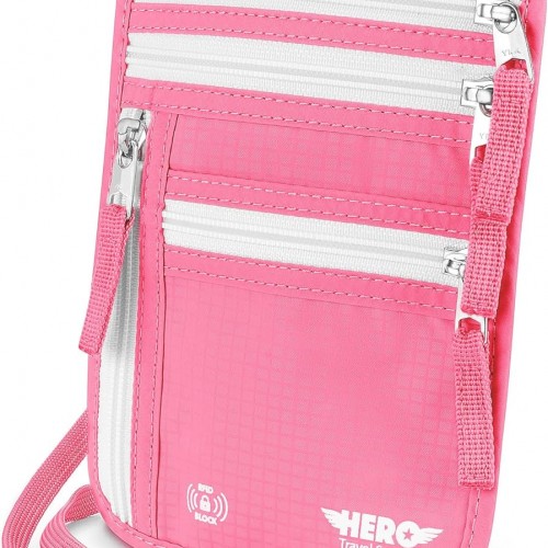 Hero Travel Supply Neck Wallet, RFID Blocking Passport Holder, Easy to Conceal Pouch (Hot Pink)