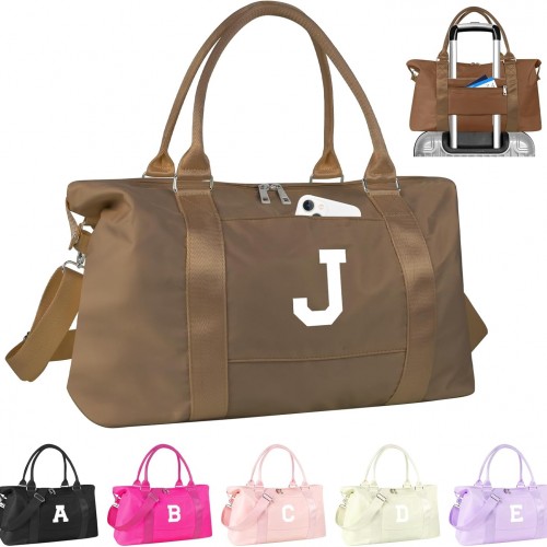 Birthday Graduation Gifts for Daughter,Initial Travel Duffel Bag Sports Gym Bag for Girls Teen Kids Birthday Gifts,Personalized Weekender Bag Carry On Tote Bags Cute Overnight Bag for Women(Brown, J)